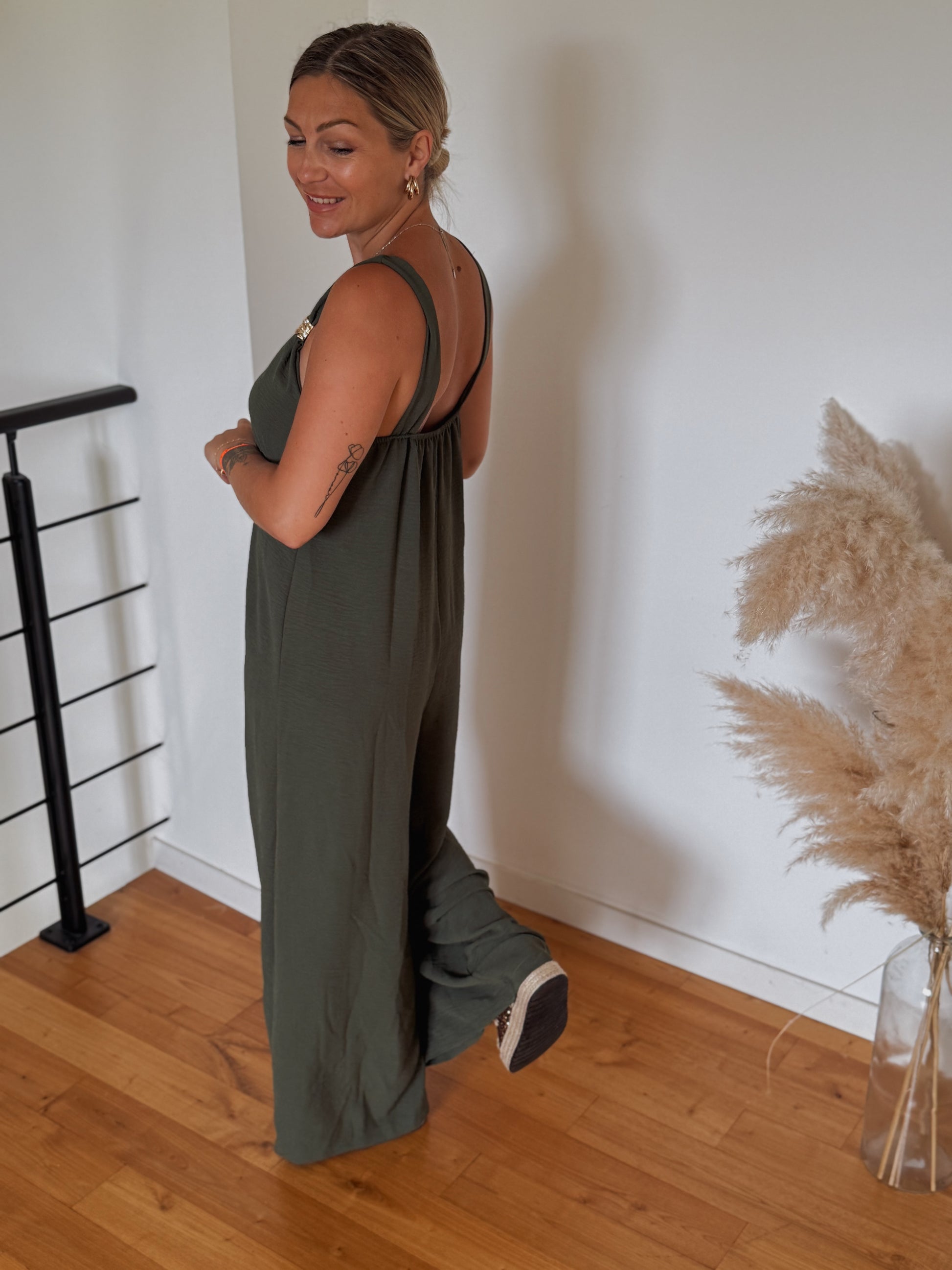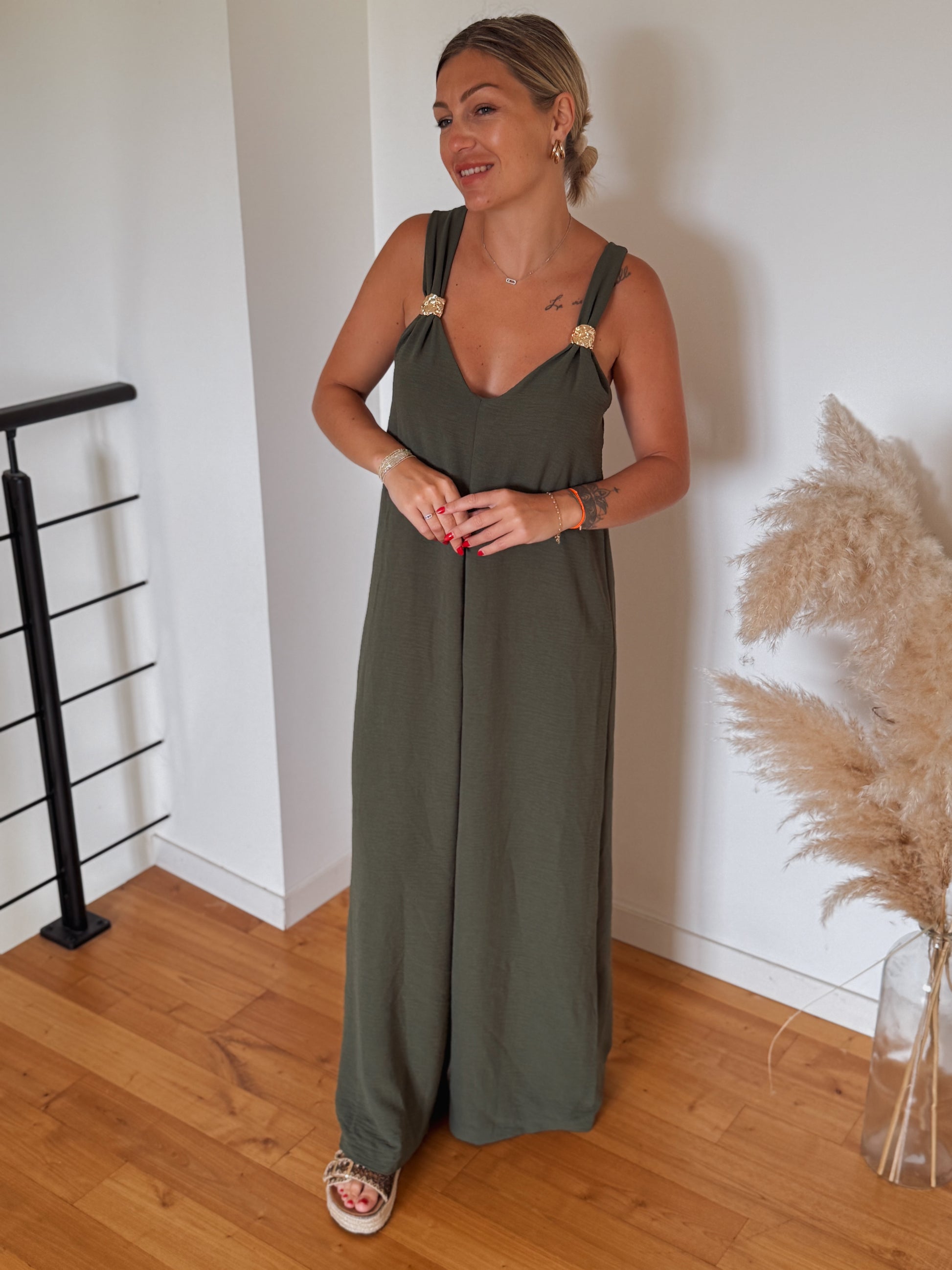 Alma est une superbe combinaison qui se veut fluide et très agréable à porter. Dotée de bijoux au niveau des épaules elle se voudra très féminine et élégante.